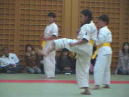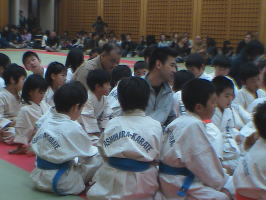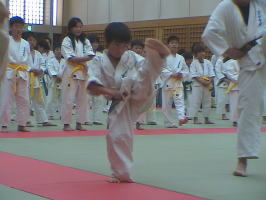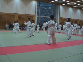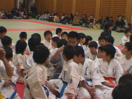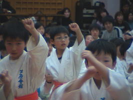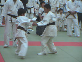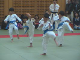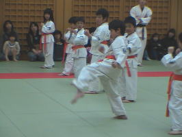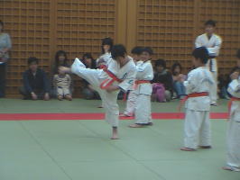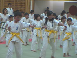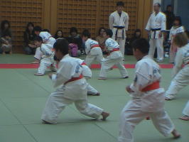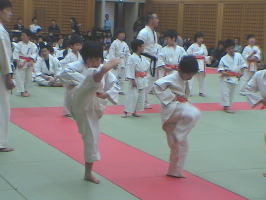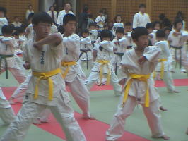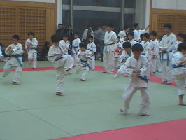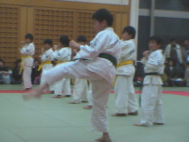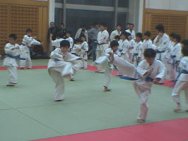 トップバッターは白帯と橙帯少年部。その後に青帯、黄帯、緑帯、茶帯と続きます。