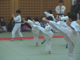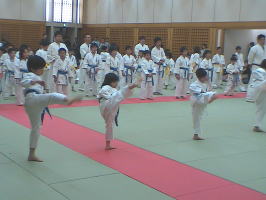 最後の写真は審査会終了後の少年部の集合写真です。次回の審査会を目指して、またがんばっていきましょう。