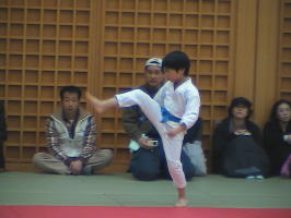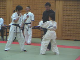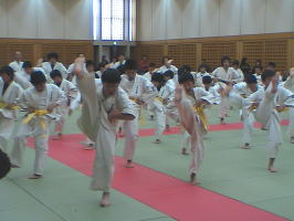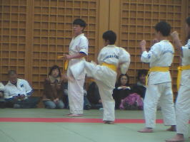 基本が終わると次はコンビネーションと型の審査。まずはコンビネーションからです。