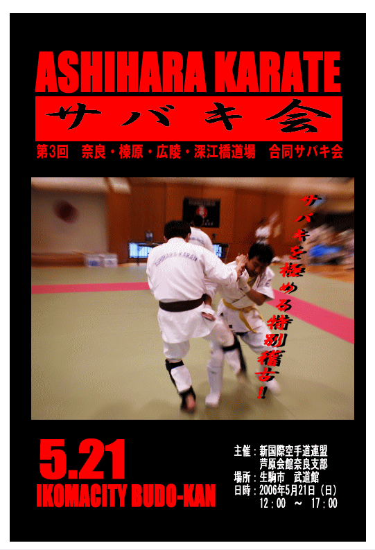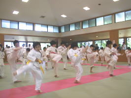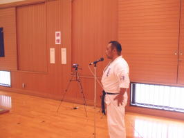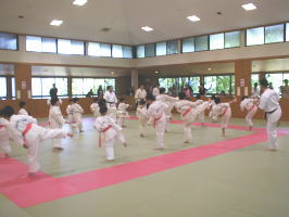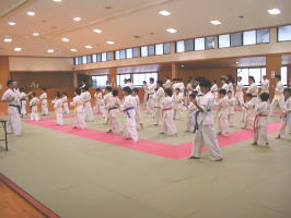 今回で3回目となるサバキ会。12:00に集合して空手着に着替え、各自始まるまでに体をほぐします。そして12:30からいよいよスタート。はじめに矢野奈良支部長による挨拶。そして少年部と一般部で一緒に基本稽古でウォーミングアップ。 |