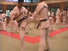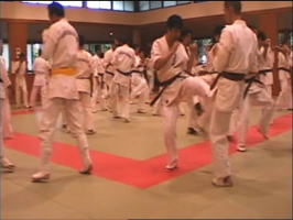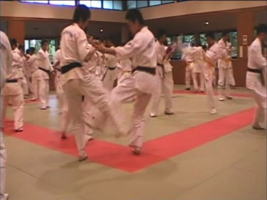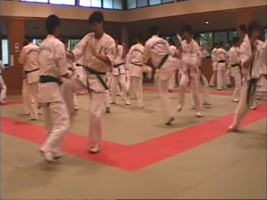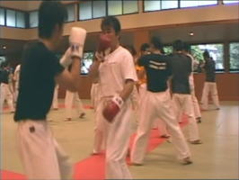 スパーリングをこなした後は、いよいよサバキがはじまります。連続して5人〜10人前後と対戦します。 |