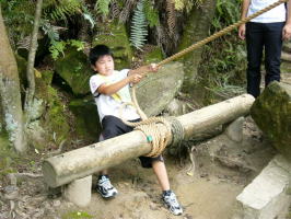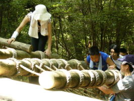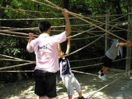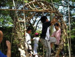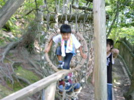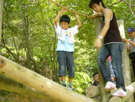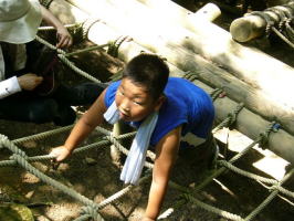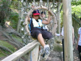 2日目のメインイベントはフィールドアスレチックです。ここの施設は後半になるほど難易度が非常に高くなり、大人でもクリアーするのが難しいものもたくさんありました。それでも少年部の皆さんはチャレンジ精神でどんどんトライしてこなしていきました。