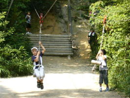その後朝食から本日のメインイベントであるフィールドアスレチックです。ここは関西で三本に入る施設だけにやりがいのあるアスレチックでした。