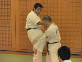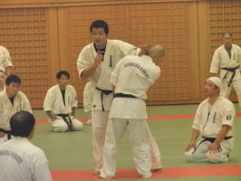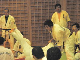 芦原館長の左右の裏投げです。相手の方は宙を舞ってました。 |