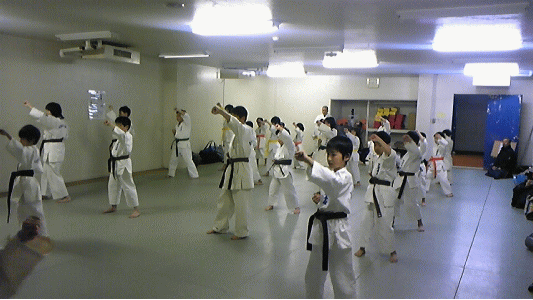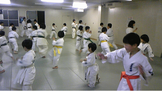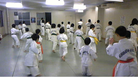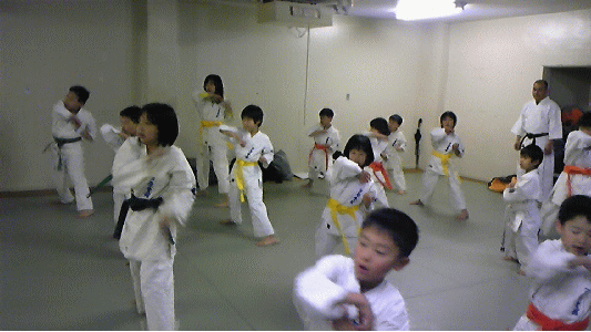 大阪市城東区の深江スポーツセンター内運動室にて活動しております芦原会館深江橋支部。来る2010年4月25日に開催される関西地区少年部育成演武大会に向けて、熱の入った稽古を続けています。