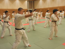 午前中の少年部の大会も無事に終わり、午後からは岸師範の直接指導による合同稽古がはじまりました。