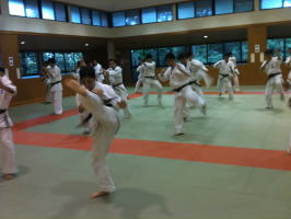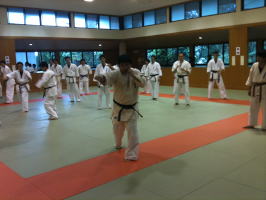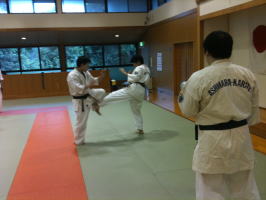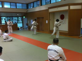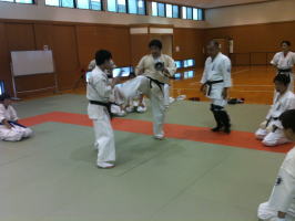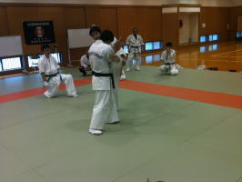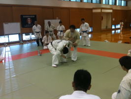 岸師範自ら技を実演しながら、指導してくださいました。岸師範の身のこなしは凄いの一言です。 |