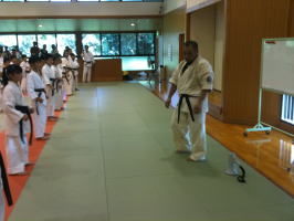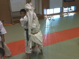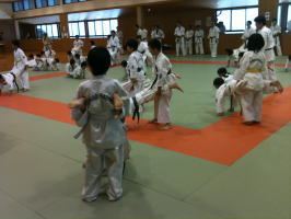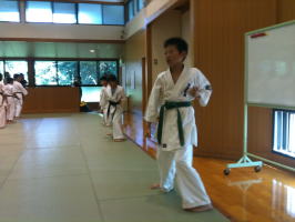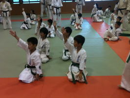 基本稽古終了後、前に出て号令を掛けた少年部の代表には拍手を送りました。 |