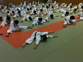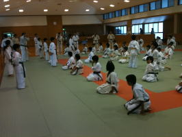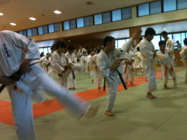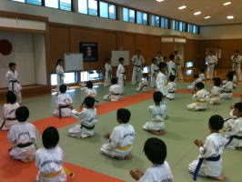 基本稽古の号令も各道場の少年部の代表が掛けました。これも稽古の一環です。 |