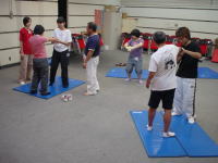 | 毎月第2・第4木曜日にコナミスポーツ生駒にて好評開催している「あなたをまもる護身術講座」ですが、2004年6月10日の講座に、新国際空手道連盟芦原会館の芦原英典館長が急遽、ご来訪されました。 芦原英典館長は一般の受講生の方々に混じって、ともに汗を流されておられました。当日、護身術講座に参加された皆様はさぞ驚かれたことでしょう。 芦原英典館長緊急来訪 >>>> Click |