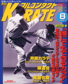 | 月刊フルコンタクトKARATE誌の2000年8月号で巻頭特集。「誰にでもできるカラテ最強の上達システムを全公開!才能を凌駕せよ!」の中で、「実戦 芦原空手 天才が創始した上達の術理」として紹介。 東京本部師範代の西山亨氏が、「サバキ」習得のために重要なテクニックである「回し受け」について詳細に解説している。 |