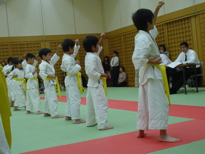 2004年10月3日、芦原会館関西地区審査会が大阪市中央体育館の地下3階柔道場にて開催されました。奈良支部からも多数の門下生の方々が昇級を目指して参加いたしました。