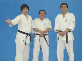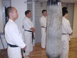 | 撮影を見守る関西本部の黒帯と矢野支部長。 | ![]() |
