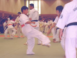 | 2005年10月23日、大阪市中央体育館におきまして、2005年10月度審査会が開催されました。 奈良支部におきましては、今回、少年部・一般部あわせて38名が昇級目指して、受審いたしました。 ここでは、その審査会の模様を紹介いたします。 |