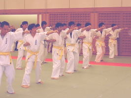| 2005年10月23日、大阪市中央体育館におきまして、2005年10月度審査会が開催されました。 奈良支部におきましては、今回、少年部・一般部あわせて38名が昇級目指して、受審いたしました。 ここでは、その審査会の模様を紹介いたします。 |