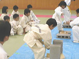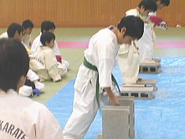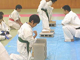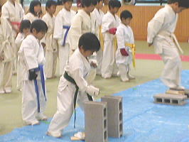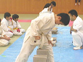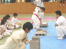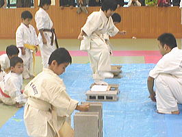 | 2005年11月23日(水祝)、生駒市武道館にて芦原カラテの真髄でもある「サバキ」に特化した特別稽古「第2回 奈良・榛原・広陵・深江橋道場合同 サバキ会」が開催されました。 今回のサバキ会では、少年部、一般部ともにサバキ稽古と試し割りをそれぞれ行ないました。 少年部のサバキ稽古に入る前に、兼松指導員がサバキの説明も兼ねて2人掛けの演武をおこないました。そして少年部の上の帯から一人ずつサバキにチャレンジ。サバキ側と攻撃側に分かれて行ないました。 サバキ稽古の次は、試し割りをおこないました。少年部は足刀や正拳による板割りに挑戦。 少年部の試し割り終了後、矢野支部長による四方割りの演武もおこなわれ、ブロック割りの迫力に喚声もあがっていました。 このページでは当日の模様をダイジェストでご紹介します。 |