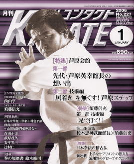 | 月刊フルコンタクトKARATE誌の2006年1月号で芦原会館を巻頭特集。 第1部は、巻頭カラーページで芦原会館東京本部の西山亨師範が先代芦原英幸館長との思い出を語る。 第2部では技術編として、サバキの根幹をなす「ステップ」について、西山師範が重心の移動からステップの種類、稽古法にいたるまで丁寧に解説。 また芦原英典館長による海外視察も紹介。ロシア、ハンガリー、ルーマニアの各支部での指導風景も掲載されている。 |