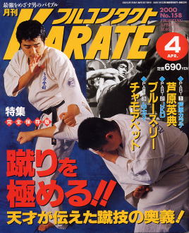 | 月刊フルコンタクトKARATE誌の2000年4月号の巻頭特集、「蹴りを極める」のなかで、芦原空手のキックテクニックを紹介。 敵を制圧するキックテクニックとして、ストッピングとカッティングキックに焦点をあてて技術解説。それぞれ基本フォームから、サバキのバリエーションまで詳細に解説されている。また、この取材は関西本部でおこなわれ、奈良支部・兼松嗣樹指導員も誌面に登場している。 さらに、関西本部の大国町道場オープンの記事もカラーで紹介。芦原英典館長のインタビューの他に、滋賀支部・湯浅哲也支部長、京都支部・鈴木義受支部長、神戸支部・西山聡支部長、そして我らが奈良支部・矢野武文支部長のコメントも掲載されている。 |