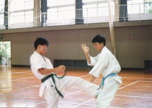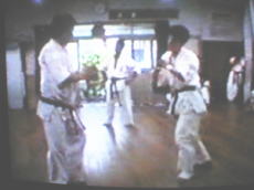 | 京都南支部には、たびたび稽古に参加させていただきお世話になっておりました。同好会の練習はどちらかといえばフルコンの練習が多かったので、本来の芦原空手のいろはは、鈴木支部長に教わったと言って過言ではありません。道場で教わったサバキを同好会で試すというような感じだったと思います。 京都滋賀合同稽古にも参加させていただきました。この時は滋賀支部の湯浅支部長にも組み手のお相手をしていただきました。右の3枚の写真がその時のものです。何度も捌かれましたがいい想い出です。 |