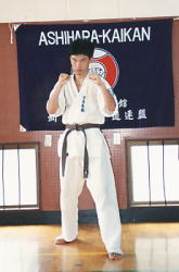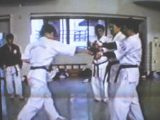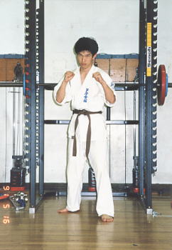 | 昇級審査で茶帯をいただきました。空手を始めてやりだしたころ、茶帯の方々に空手のごく基本的な事柄を教えていただいた記憶があるので、その自分も同じ茶帯を締めるのかと思うと感慨深いものがありました。 この頃、スタミナをつけるために毎朝、近くの稲荷山の山頂まで走りこみをするようになりました。一番練習をした時期かもしれません。 同好会と平行して京都南支部の稽古にも度々参加させていただいておりました。鈴木支部長の強さとその人柄にあこがれるようになり、それまでパンチよりも足技主体の組み手スタイルだったのですが、自分なりに鈴木支部長の強烈なパンチの打ち方を研究して、とりいれようとしたりして、いつしかインファイトの組み手スタイルに変化していきました。 |