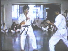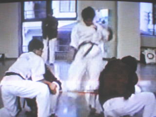 | 京都南支部の鈴木支部長のご配慮により、京都滋賀合同稽古に参加させていただきました。この時はじめて同好会のエースであったK君と鈴木支部長との組み手が行われました。いったいK君がどこまで通用するのかと期待を込めて応援しましたが、やはり格の違いを見せ付けられる結果となりました。 この時は、組み手の後に試し割の練習も行われ、私は始めてバット折りをさせていただきました。 右の画像上2枚は、K君と鈴木支部長の組み手です。鈴木支部長は強烈なパンチとサバキでK君を圧倒。右下の画像はK君の板割り。真下の画像は、私のバット折りです。 |